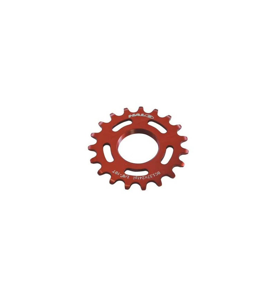 Pignon fixe Halo anodisé rouge. Le pignon Halo Track est anodisé rouge pour un montage sur roue vélo de piste ou fixie. Pignon standard compatible Mavic pour roue fixie.